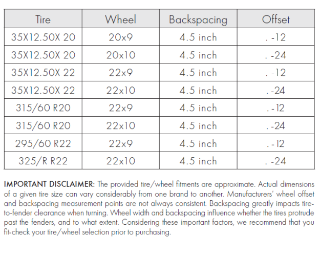 * 20 inch or larger aftermarket wheels are required w/ 4.5" of back spacing
