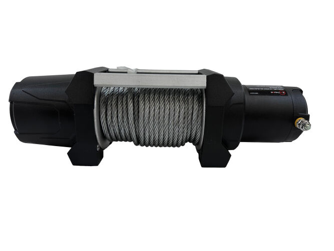 The Enthuze 4,500lb 12V DC Electric ATV/UTV Winch features a 1.4 HP permanent magnet motor that stays cooler during long pulls. The three-stage planetary gear system provides fast line speed. The automatic load-holding brake ensures maximum safety. The free spooling provides a fast line-out, while the 12’ ergonomic handheld remote control allows for safe operation at a distance. The winch contains a 4-way roller fairlead and an aircraft-grade wire rope.